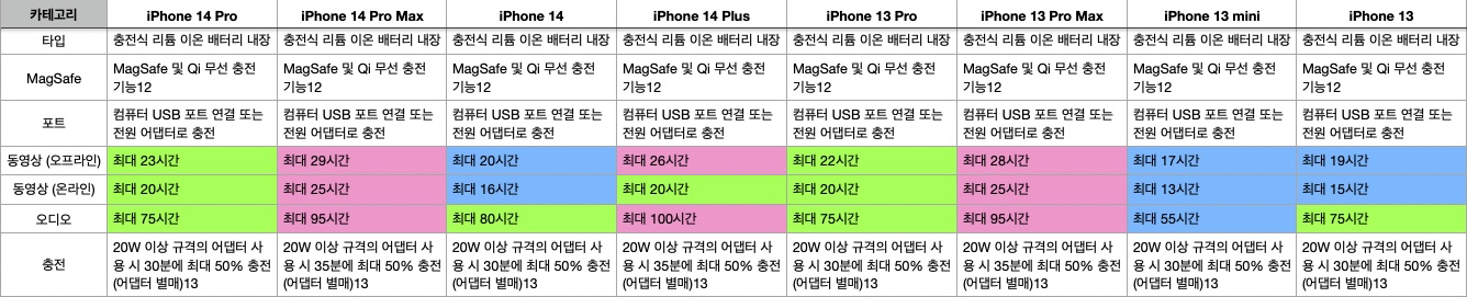 아이폰(13/14) 전 모델 사양 비교/총정리 본문