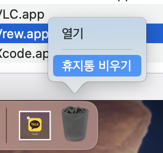 휴지통을 비우면 앱이 영원히 삭제된다.