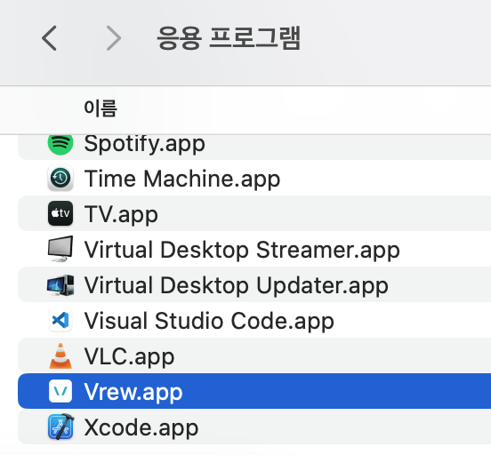 위와 같이 "응용 프로그램" 폴더를 확인해도 보이지 않을 경우,