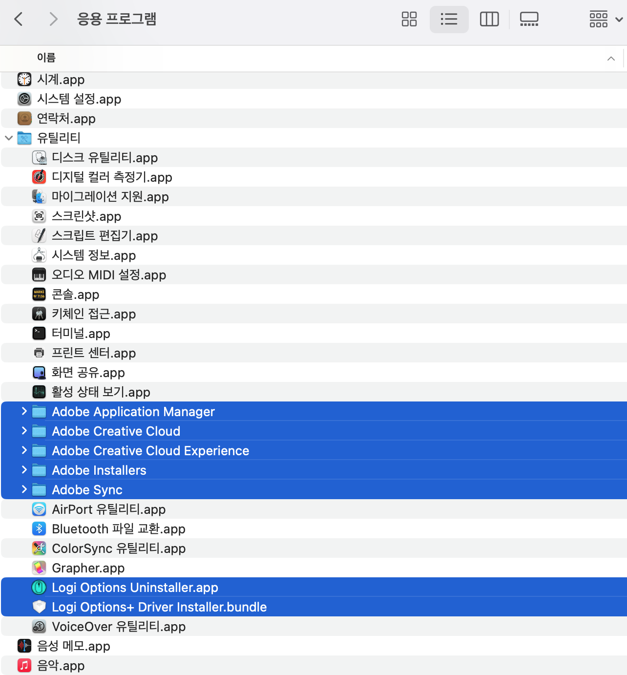 3. "응용프로그램/유틸리티" 폴더에서 삭제하기