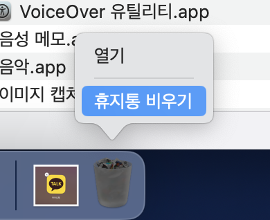 마지막으로 휴지통을 비우면,