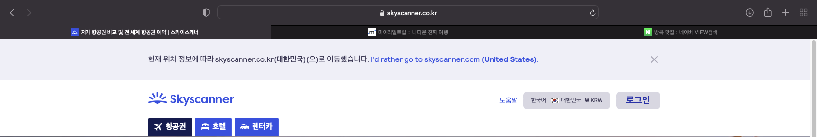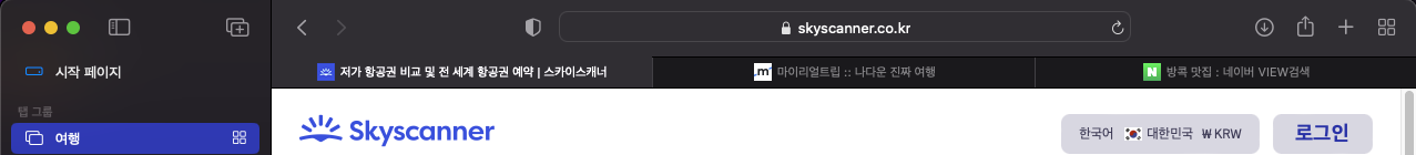 아래처럼 '여행'에 대한 주제로 3개의 탭을 넘나들며 웹서핑을 한다고 하자. (스카이스캐너+마이리얼트립+네이버블로그)