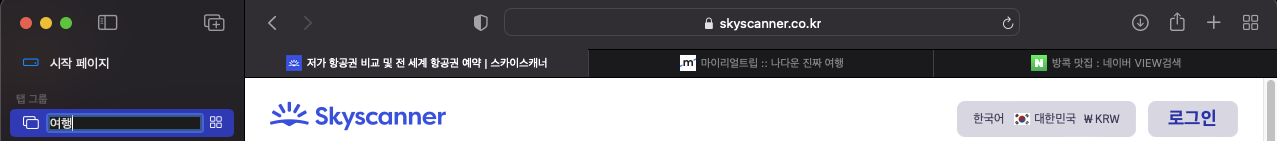 '이 3개의 탭을 '여행'이라는 이름의 탭그룹으로 묶을 수 있다.