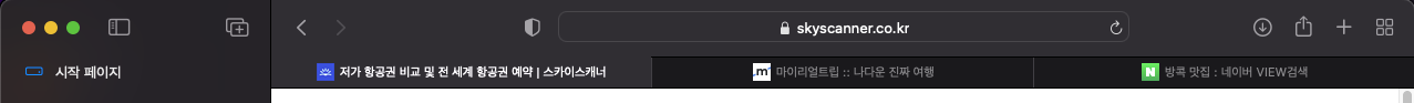 아래처럼 '여행'에 대한 주제로 3개의 탭을 넘나들며 웹서핑을 한다고 하자. (스카이스캐너+마이리얼트립+네이버블로그)